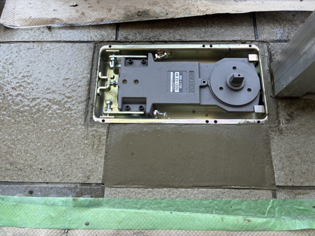 エントランスドアのフロアヒンジ交換をいたしました。 油漏れと雨水侵入による錆付きで不具合が起きていました。 取外して新しいものに交換します。 タイルの斫り箇所を最小で納める事ができました。 ドアを戻して完成です。 スムーズな開閉になりました!...