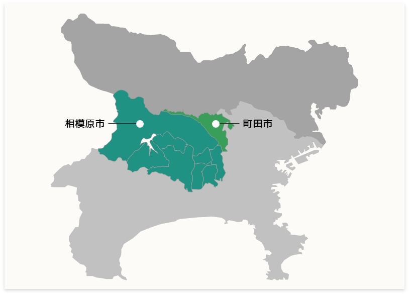 (県央地域:相模原市、大和市、座間市、綾瀬市、海老名市、厚木市、愛川町、清川村)